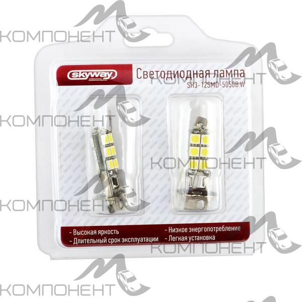 Лампа фары H3 12V 12 SMD5050 1конт. SKYWAY белая (блистер 2шт)