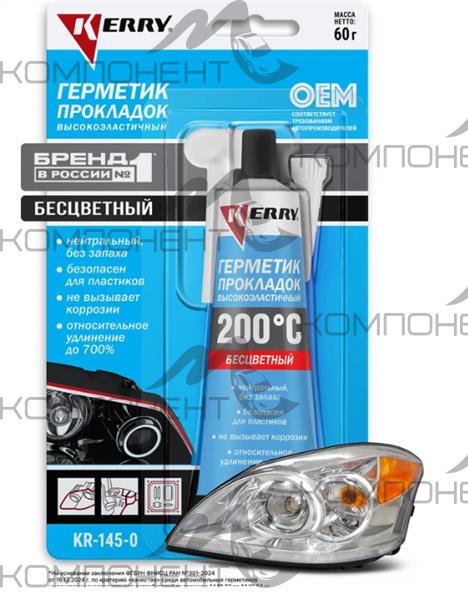 Герметик прокладок силиконовый KERRY 60гр бесцветн высокоэластичн.