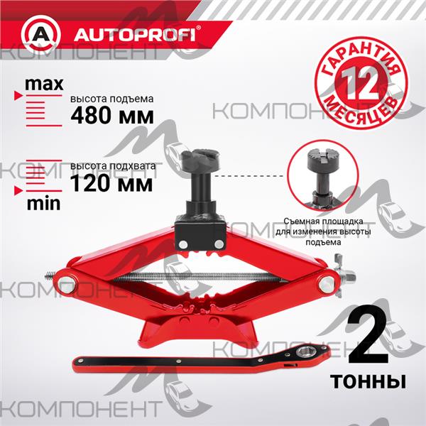 Домкрат 2т механический ромб h 120-480мм со съемной площадкой AUTOPROFI ручка-трещетка
