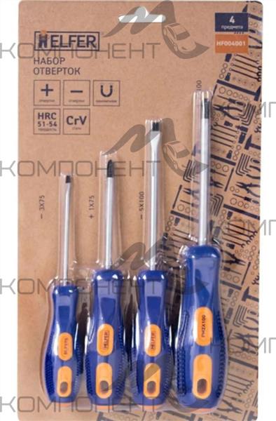 Набор отверток 4 шт. ( Cr-V; двухкомп. рукоятка) HELFER