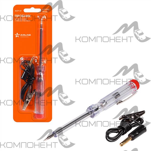 Пробник индикаторный 6-24V 140мм с проводом "крокодил" 70см металл/пластик блистер AIRLINE