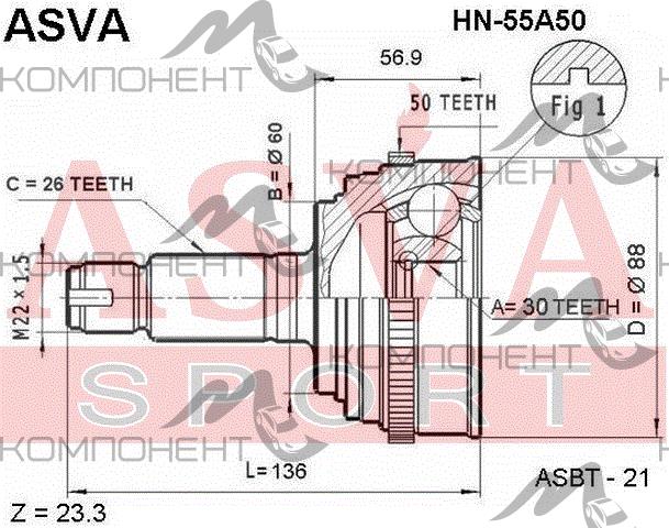 ШРУС 26*60*30 ASVA