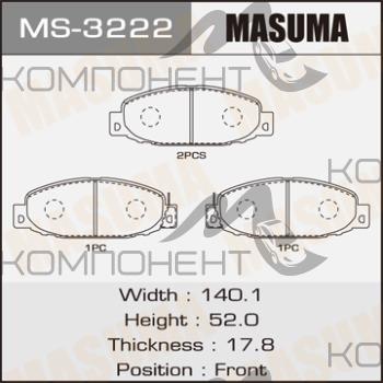 Колодки передние дисковые 3222 (MS) (MASUMA) Fuso/Canter FE301/305/321/425, FB300/308