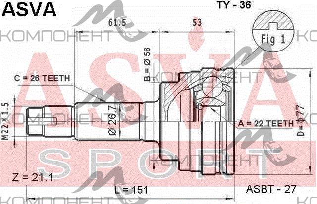 ШРУС 26*56*22 ASVA 850852 ASVA Узнать цену